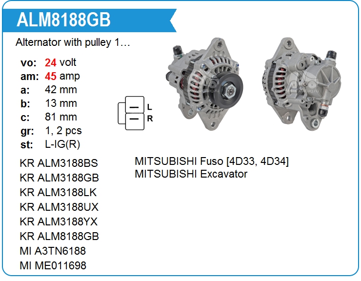 Генератор cо шкивом 1 ручей