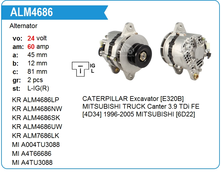 Генератор cо шкивом 12 ручьев