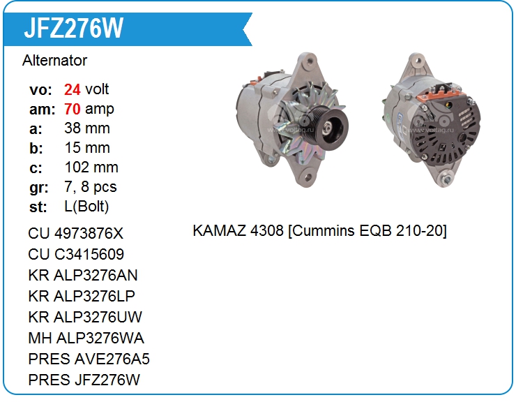 Генератор cо шкивом 8 ручьев