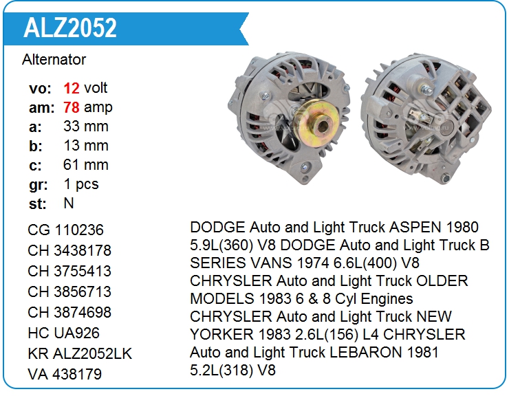 Генератор cо шкивом 1 ручей