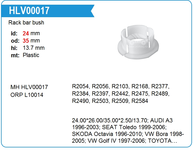 Заменители : HLV00017R , HLV00017RR , HLV00039 , HLV00046