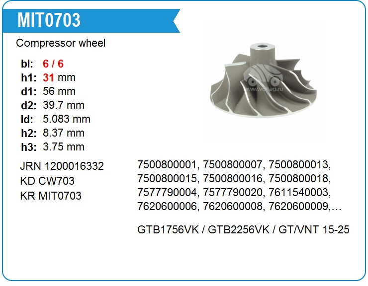 Крыльчатка турбокомпрессора