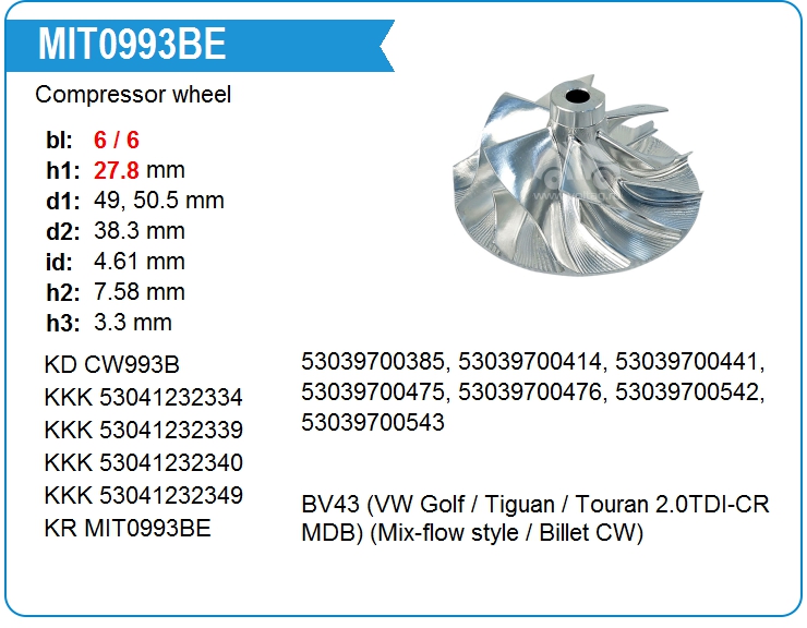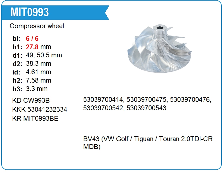 Крыльчатка турбокомпрессора