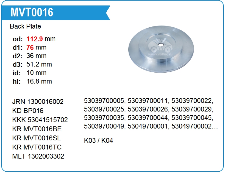 Задняя пластина турбокомпрессора