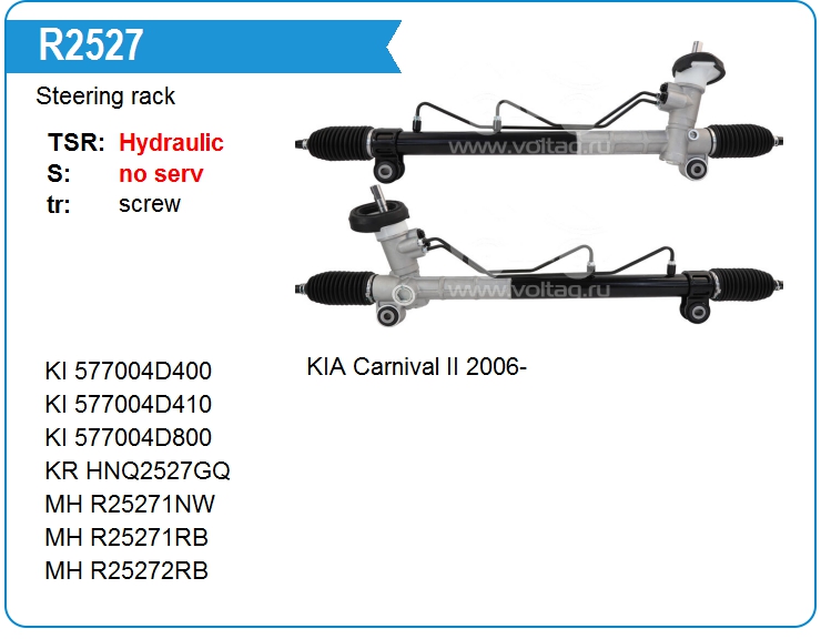 Рулевая рейка без тяг гидравлическая