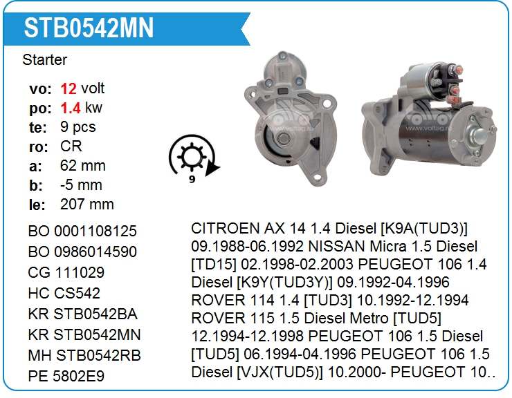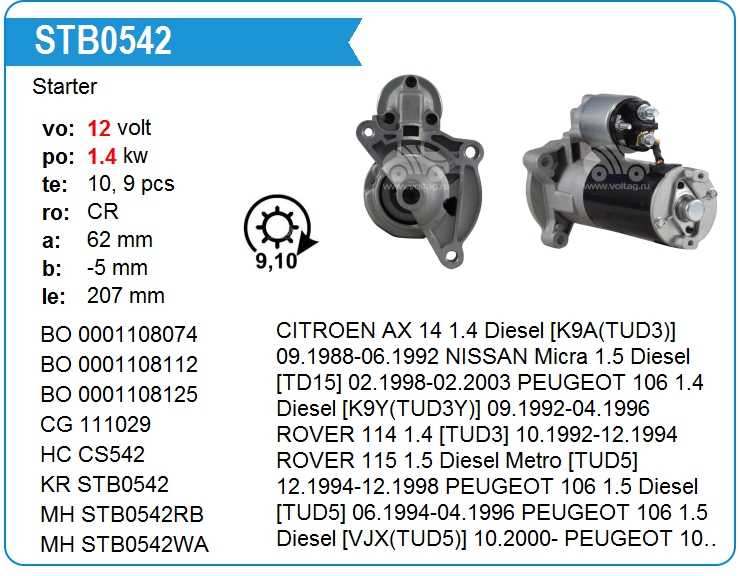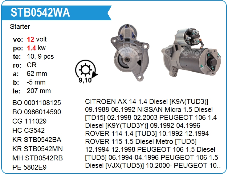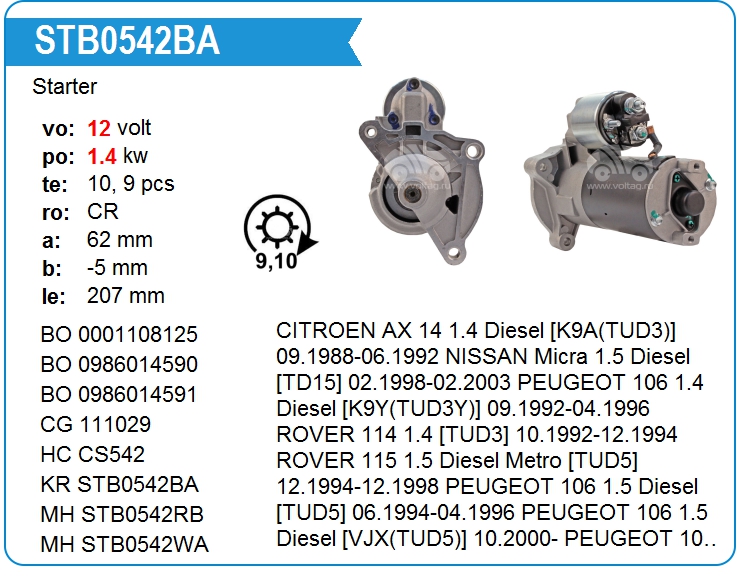 Стартер 9 зубов